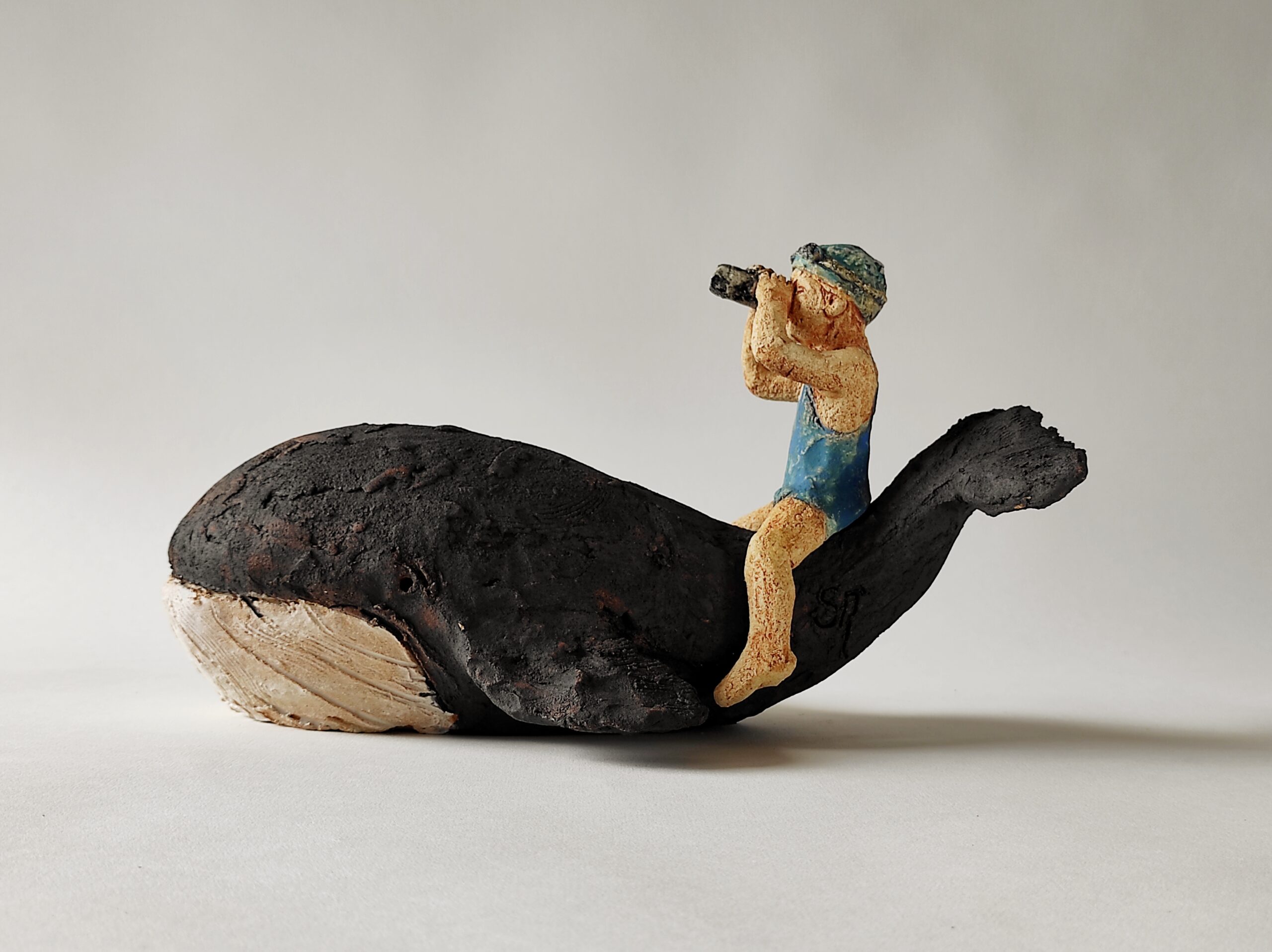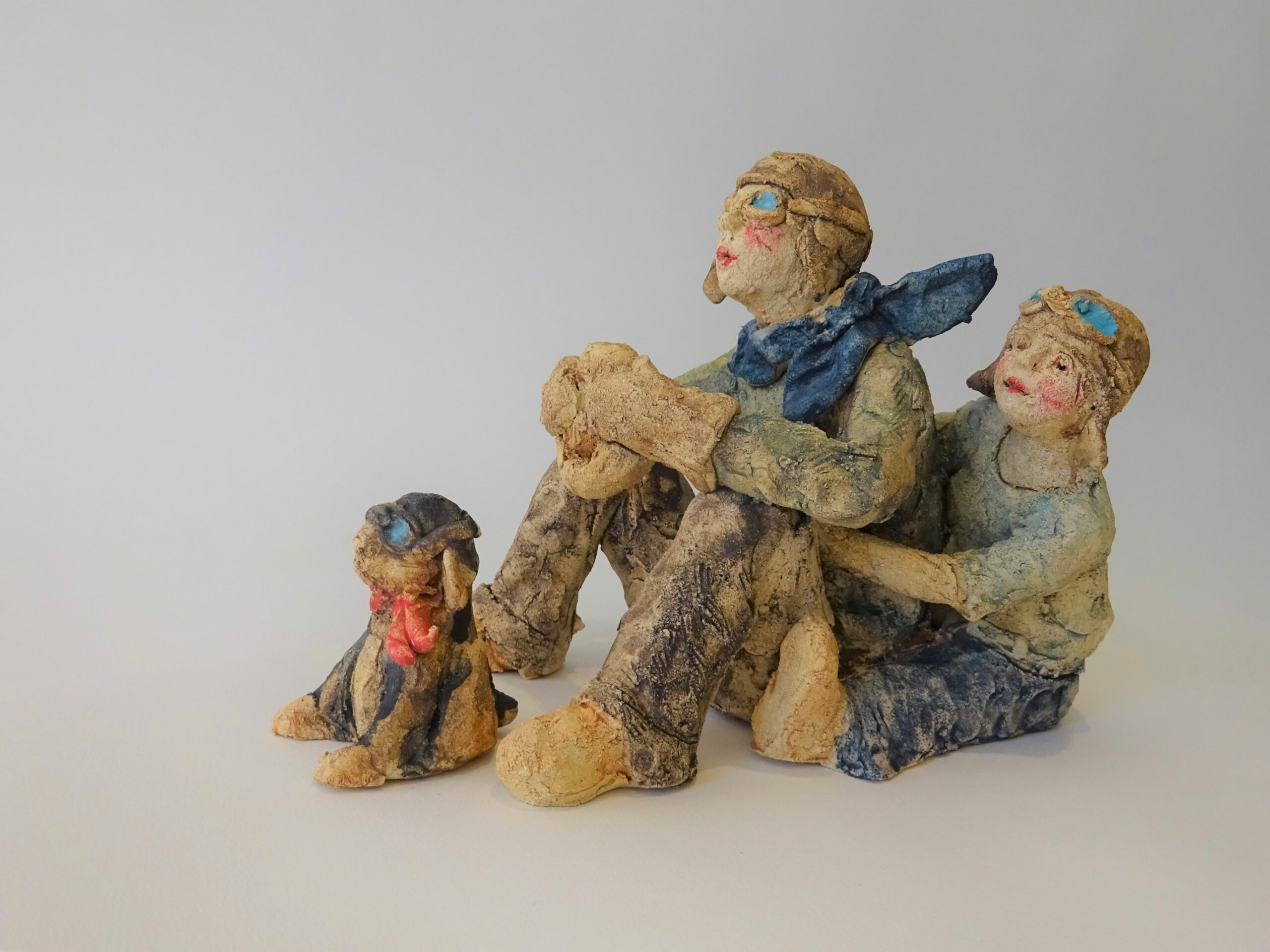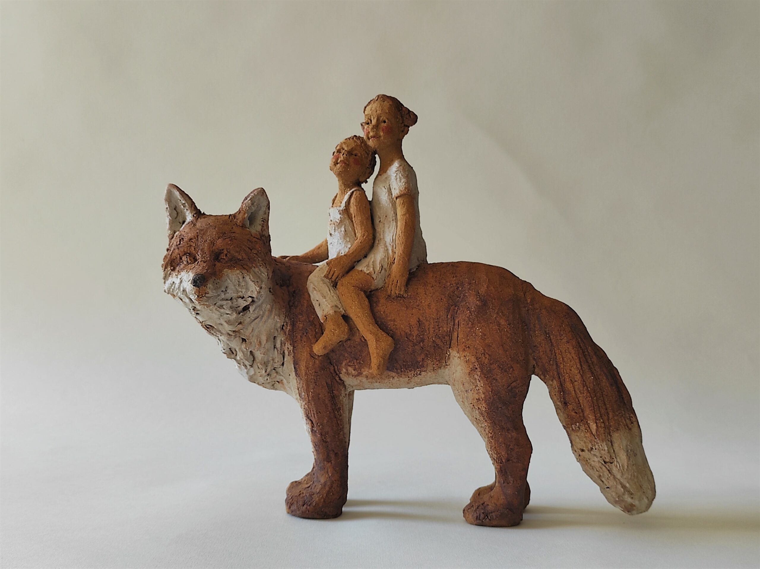 J’utilise un grès chamotté que je cuis à haute température, après l’avoir coloré. Mes sculptures peuvent donc être exposées également à l’extérieur.